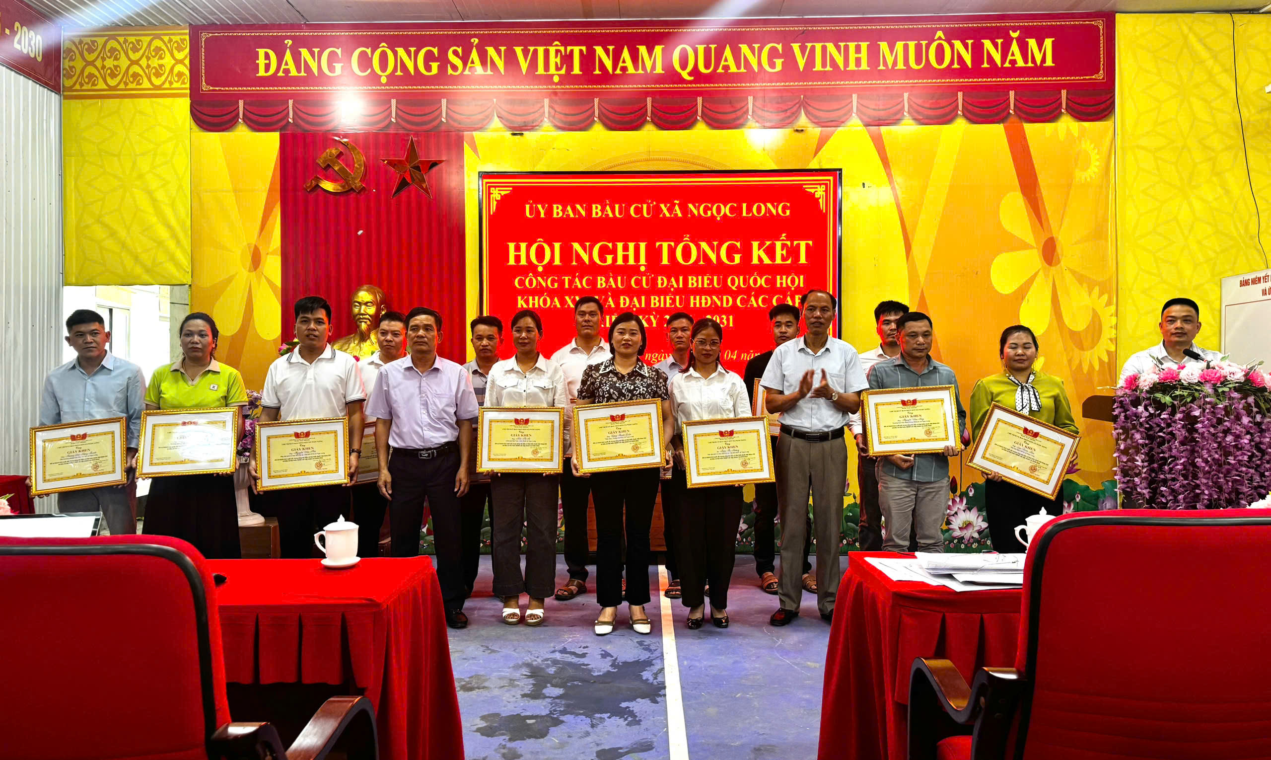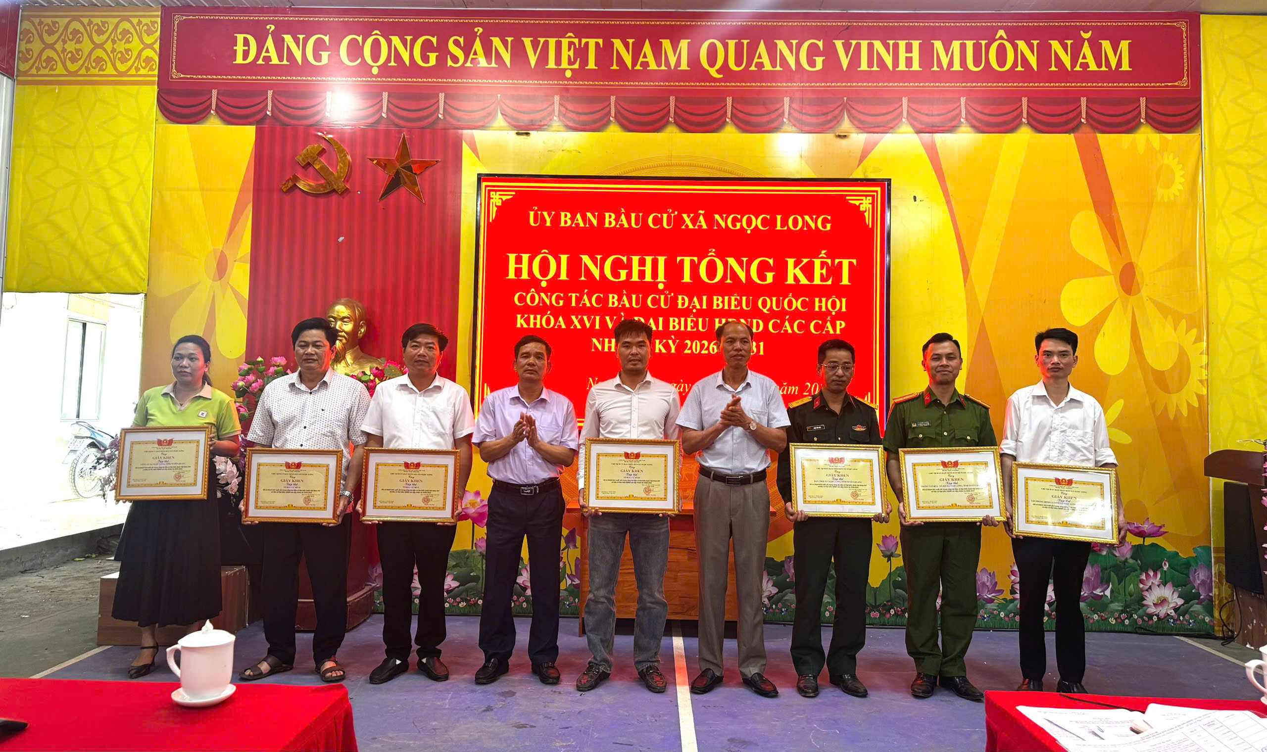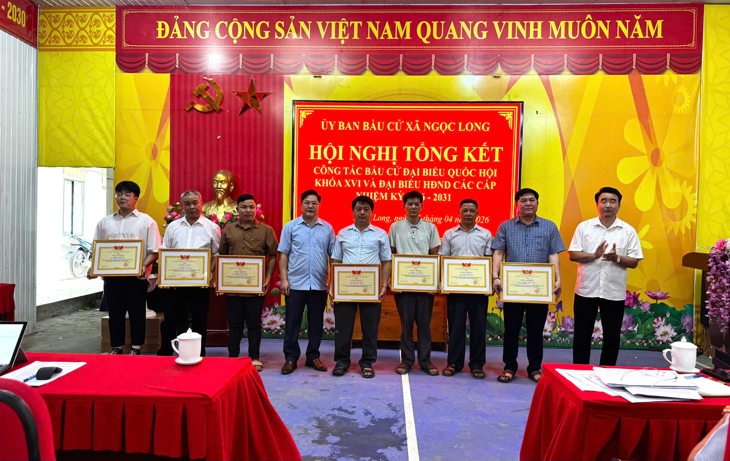 Nhân dịp này, Ủy ban Bầu cử xã Ngọc Long đã trao tặng Giấy khen cho 7 tập thể và 70 cá nhân có thành tích xuất sắc trong công tác bầu cử đại biểu Quốc hội khóa XVI và đại biểu HĐND các cấp, nhiệm kỳ 2026–2031.