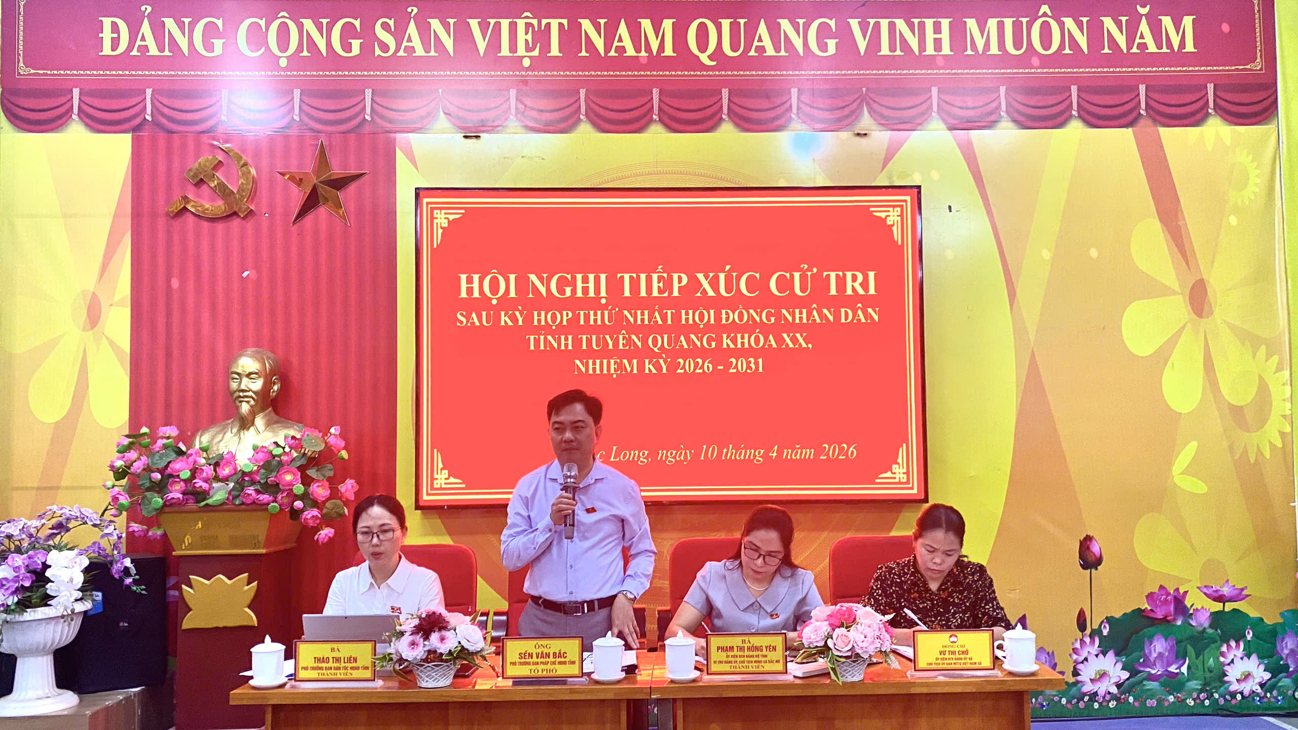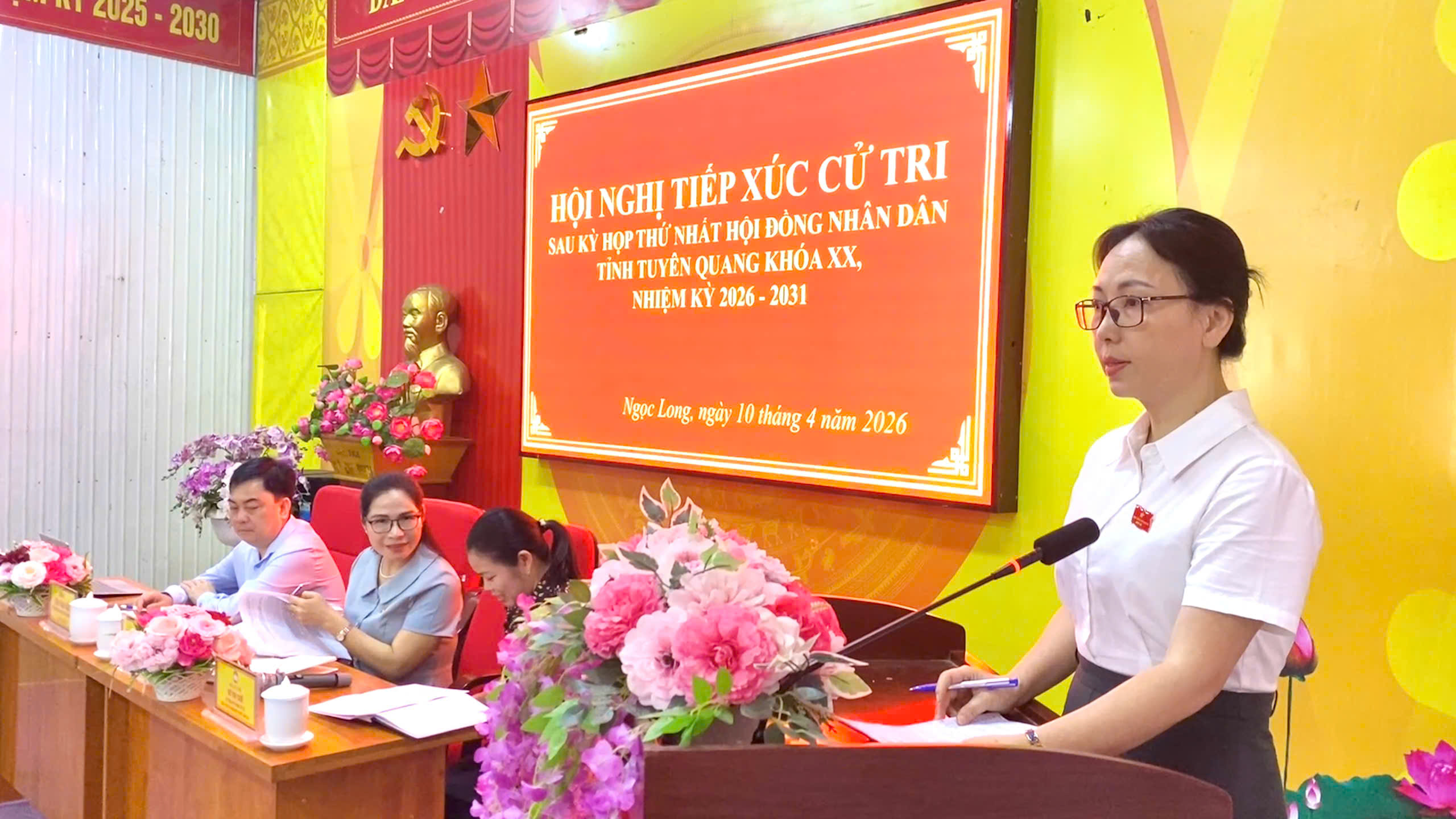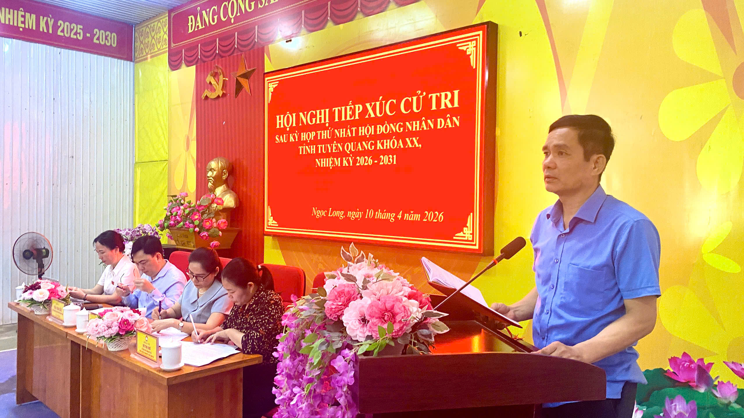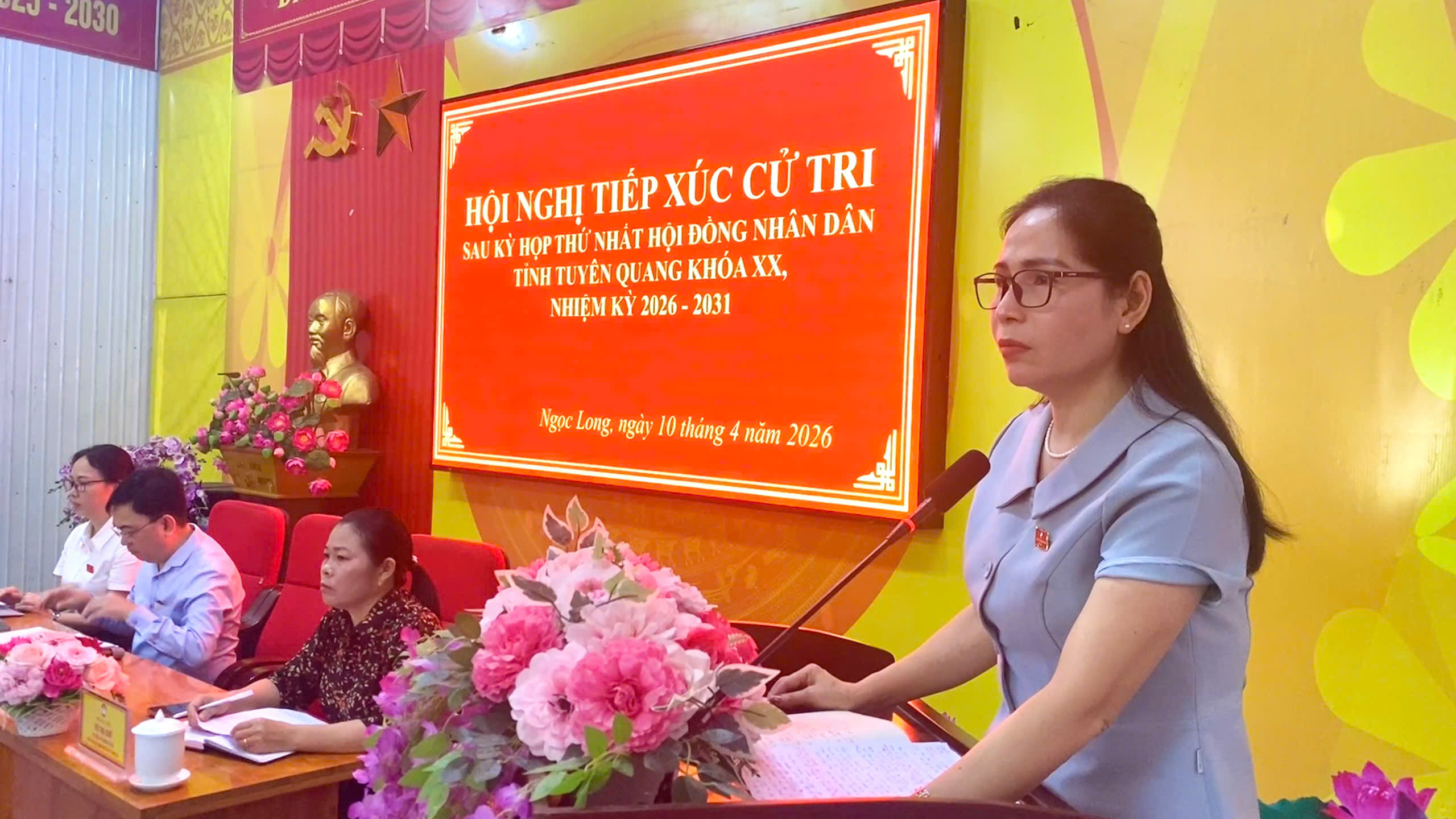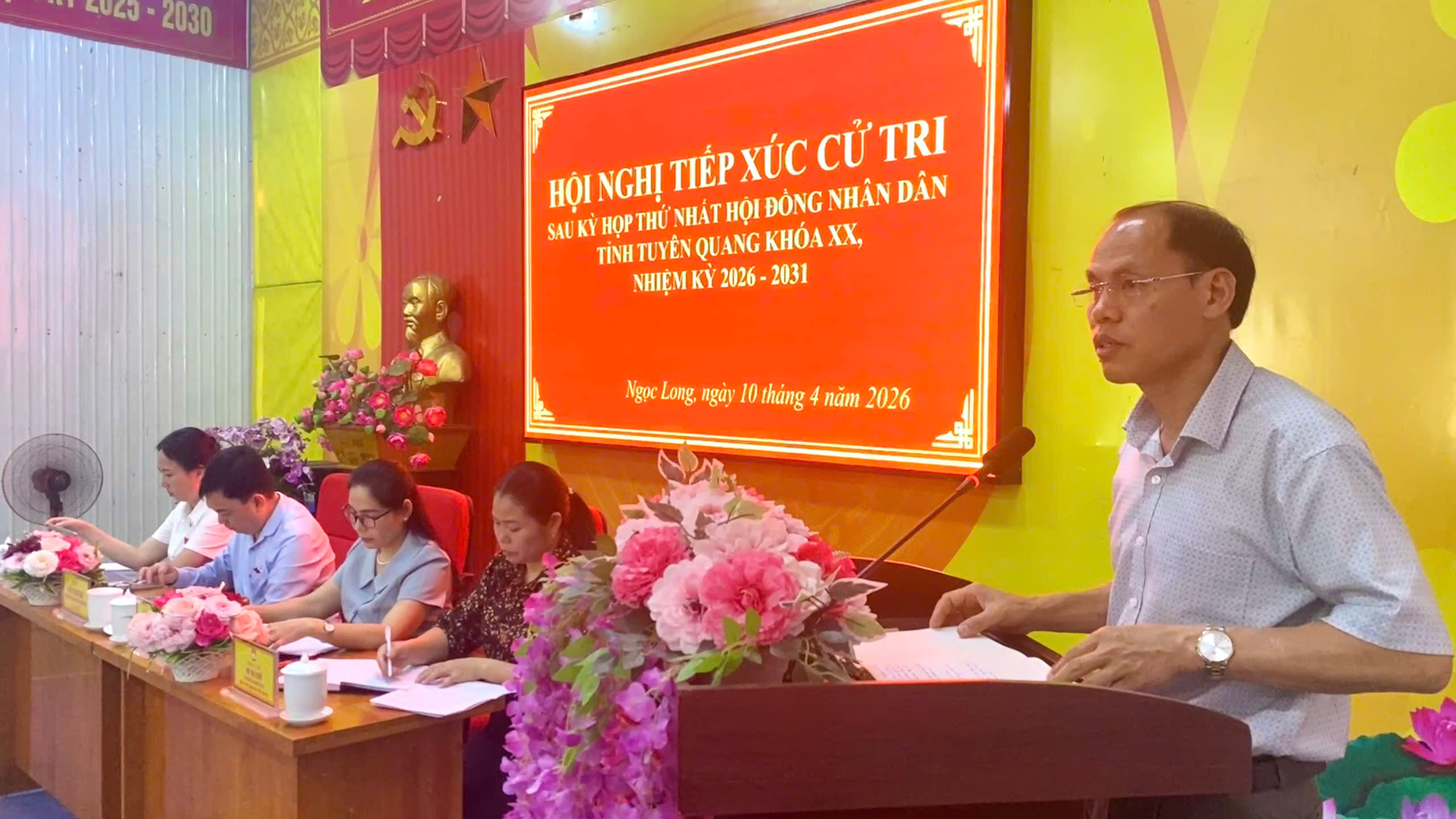 Tại buổi tiếp xúc cử tri, Tổ đại biểu HĐND tỉnh đã báo cáo với cử tri về kết quả bầu cử đại biểu Quốc hội khóa XVI và đại biểu HĐND các cấp nhiệm kỳ 2026 - 2031; kết quả Kỳ họp thứ Nhất HĐND tỉnh Tuyên Quang khóa XX, nhiệm kỳ 2026 - 2031; tình hình phát triển kinh tế - xã hội, quốc phòng, an ninh quý I năm 2026 và các nhiệm vụ, giải pháp trọng tâm trong thời gian tới. Cử tri xã Ngọc Long đã bày tỏ sự đồng tình và nhất trí với báo cáo của Tổ đại biểu; cử tri cũng vui mừng, phấn khởi vào sự thành công về kết quả bầu cử đại biểu Quốc hội khóa XVI và đại biểu HĐND các cấp nhiệm kỳ 2026 - 2031 và Kỳ họp thứ Nhất HĐND tỉnh Tuyên Quang khóa XX, nhiệm kỳ 2026 - 2031.