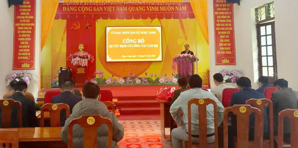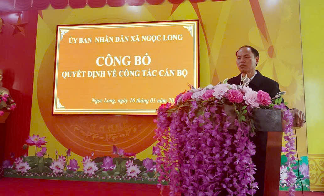 Phát biểu giao nhiệm vụ, đồng chí Nguyễn Văn Đỉnh, Phó Bí thư Đảng ủy, Chủ tịch UBND xã Ngọc Long nhấn mạnh: trên cương vị công tác mới, cán bộ được bổ nhiệm cần tiếp tục rèn luyện phẩm chất chính trị, nâng cao tinh thần trách nhiệm, phát huy vai trò nòng cốt trong công tác tham mưu cho cấp ủy, chính quyền địa phương về nhiệm vụ quốc phòng, quân sự; chủ động phối hợp với các lực lượng, giữ vững an ninh chính trị, trật tự an toàn xã hội trên địa bàn.