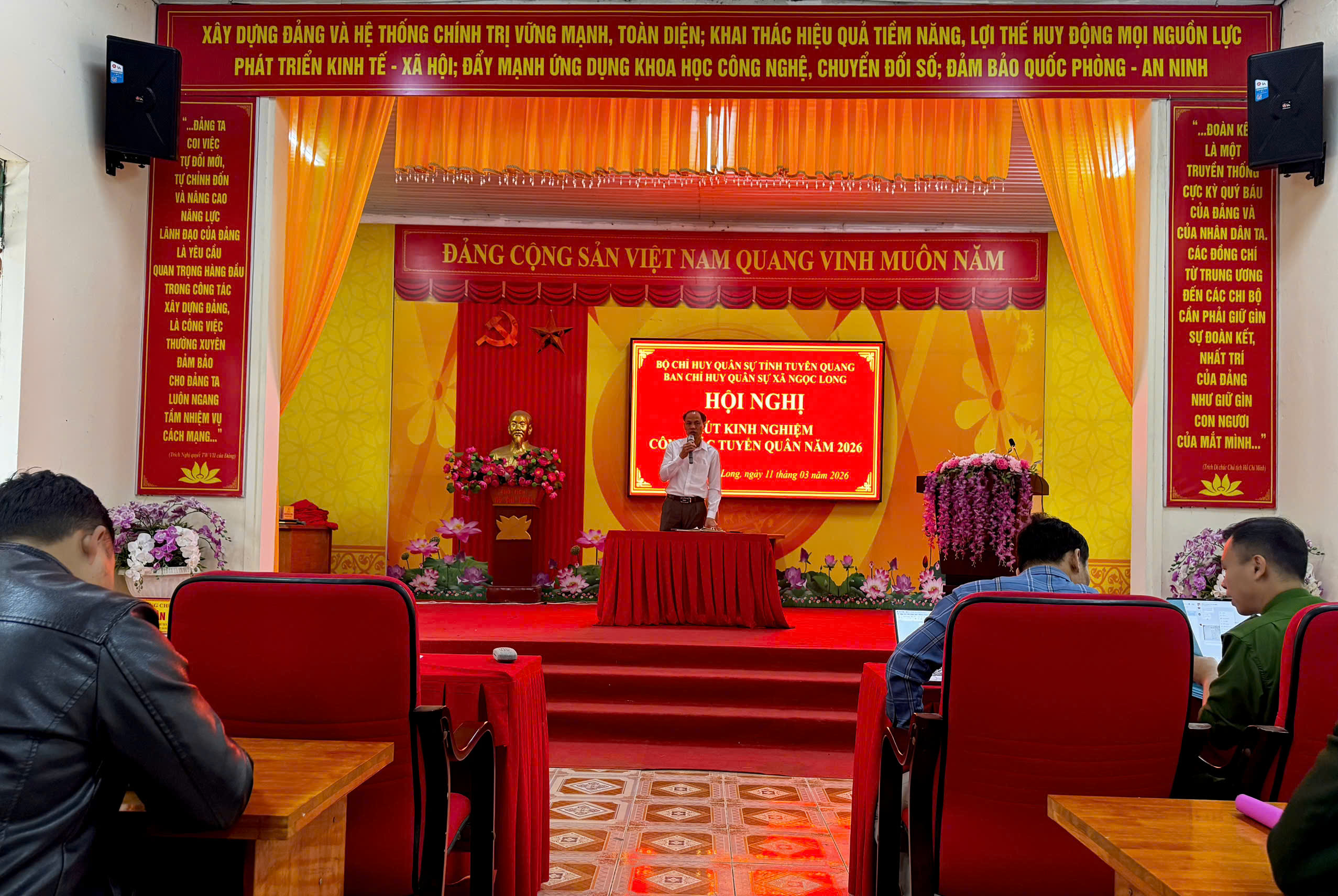 Phát biểu kết luận tại hội nghị, đồng chí Nguyễn Văn Đỉnh, Chủ tịch UBND xã Ngọc Long nhấn mạnh: năm 2026 là năm đầu tiên thực hiện công tác tuyển quân theo mô hình chính quyền địa phương hai cấp, vì vậy công tác tuyển chọn và gọi công dân nhập ngũ có nhiều điểm mới. Trong điều kiện còn nhiều khó khăn, địa phương cần tiếp tục phát huy vai trò, trách nhiệm của người đứng đầu; huy động sự vào cuộc của cả hệ thống chính trị, trong đó lực lượng quân sự và công an làm nòng cốt trong tham mưu cho cấp ủy, chính quyền thực hiện nhiệm vụ tuyển quân.